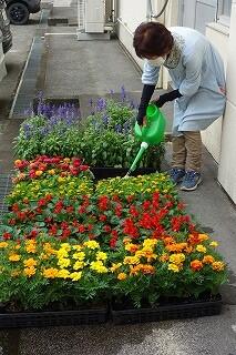 【 ↓ 1年生で花壇を整備し、きれいに植えつけました。】