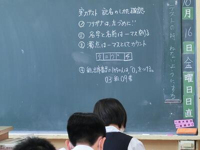 今日が3年実力テスト最終日です。教科は「社会」「数学」です。
