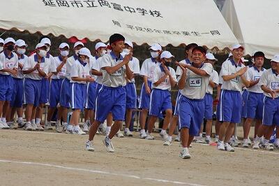 昨日の体育大会を盛り上げた赤団・白団の団長が校長室に来て、感想などを語ってくれました。両団長のおかげで盛り上がった体育大会になったことは間違いありません。また、保護者の方々からも生徒たちの頑張りで「元気をもらった」という感想を聞くことができました。「ありがとう」岡中のみなさん!!