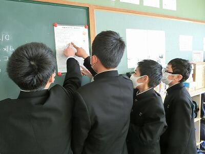 3年生は、最後の実力テストが実施されています。1月末の私立高校入試、そして県立高校入試と続きます。本当によく頑張っている3年生です。それぞれの目標とする進路実現に向けて最後の調整をしていきましょう。