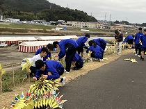 当日は、素晴らしい天候にも恵まれ、市民ボランティア(約10名)・中学生ボランティア(62名)の協力を得て、作業を行うことができました。