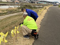 作業中は、雨は降らなかったものの、風が強く苦労しましたが、約1500個の風車を設置することができました。