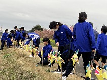 本校では、「延岡花物語」において平成28年度から、延岡市内の中学校と協力して風車を作成・設置しております。