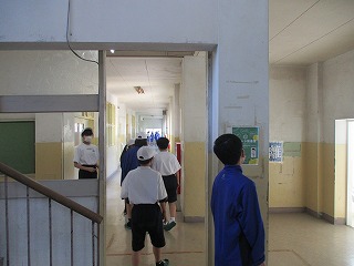 [ ↓ 避難経路を確認し、グラウンドに避難しました。]
