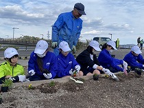 12月5日(木)の午後に、コノハナロード入口広場の花植えボランティアを1年生が行いました。