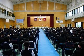 感染対策を行い、在校生、保護者を一堂に会して実施しました。