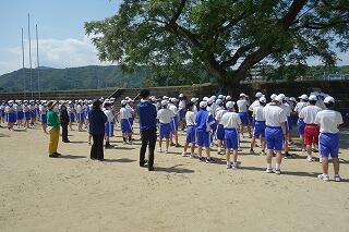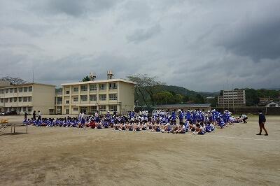 【 ↓ 全校生徒がグランドに集まって実施できました 】