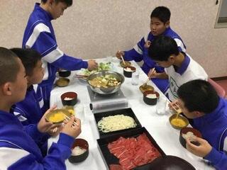 ▲今日の夕食はすき焼きです。いただきます。今日も食欲旺盛です。