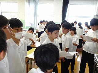 保護者から頂いたお手紙を1組のみなさんも真剣に読んでいました。
