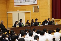 3年生との交流学習では、これまで学習してきた「延岡の未来プラン」について中学生が発表し、様々な視点で大学生の皆さんからアドバイスをいただきました。後半は、大学生が延岡で行った「地域学習」で気付いたことや学んだこと等を発表してもらい、中学生からの質問にも答えてもらいました。