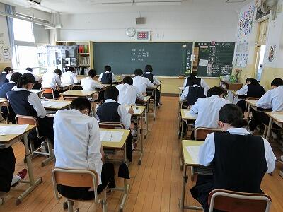 今日が3年実力テスト最終日です。教科は「社会」「数学」です。