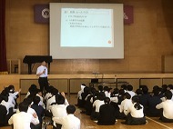 『校則・ルールづくりといじめ防止教室』をテーマに法教育を行いました。弁護士法人リレーション 代表弁護士 川 義郎 様を講師に、今回は2・3年生を対象に実施しました。