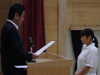 先日(9日)、県大会に出場する部活動の推戴式が行われました。