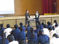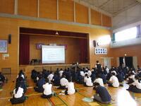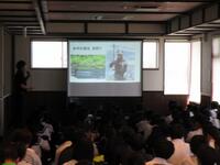 総合的な学習の時間の一環として、「地域に貢献する活動」をテーマに取り組んでいる3年生を対象に、延岡市観光協会の方々をお招きし、講話を行いました。