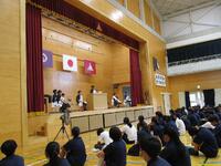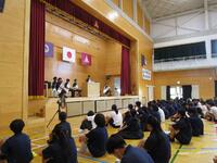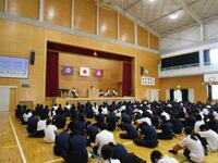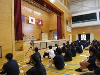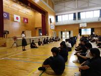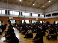 幾分か涼しくなったこともあり、久しぶりに体育館での講話となりました。広い空間の中でも、生徒たちは真剣な表情で耳を傾け、ときには大きくうなずきながら聞いていました。講話が終わった後には、自ら手を挙げて質問をする姿も見られ、その熱心さに講師の先生方も感心されていました。