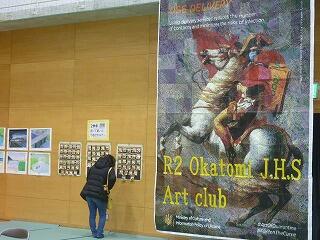 (↓②体育館の壁面を使って生徒の作品を掲示)