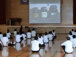 【株式会社 田口ファミリーファームの講師から話を聞く生徒たち】