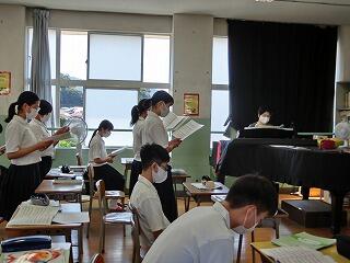 この時期に学校に歌声が聞こえないのは寂しい感じがしていました。コロナウイルス感染症対策で換気・間隔・マスク着用をしながらの合奏がようやくスタートしました。