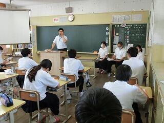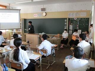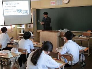 ふるさと延岡で、夢や希望をもって働く大人との関わりをとおして、大人になって働くのが待ち遠しい、早く社会に出てみたいという、将来に明るい展望をもつ生徒の育成を目指して、「岡富中学校 ドリームプラン」を立ち上げました。新型コロナウイルス感染症対策のため、予定どおりには進んでいませんが、本日は、4名の講師から「働く喜び・誇り」「安心・安全」「伝承・継承」「広報」の4つのテーマで、生徒からの質問に回答する形で講義していただきました。各講師の仕事への熱い思いに、生徒も感動していました。