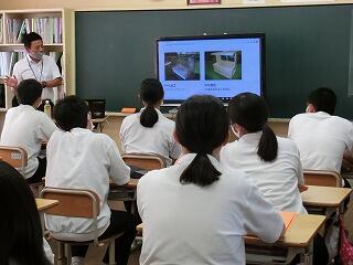 【清本鐵工株式会社の講師から話を聞く生徒たち】