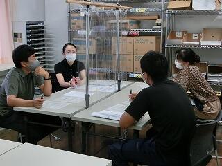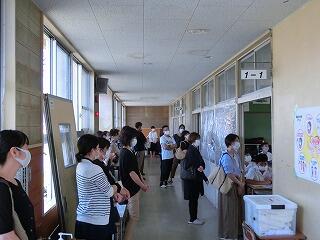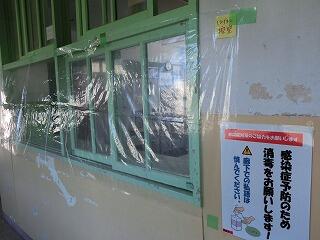 保護者の願いは、子供たちの学校での様子を実際に見てみたい、学校の願いは、頑張っている生徒の姿を保護者に伝えたい。新型コロナウイルス感染症対策を十分取った上でなんとかならないかと保護者と協議の上、窓枠を外して、代わりにビニールシートを貼っての廊下からの参観を計画しました。前日から保護者の方々にも参観準備のためにビニールシートを貼る作業に参加していただき、職員と一緒になって創り上げた参観授業です。