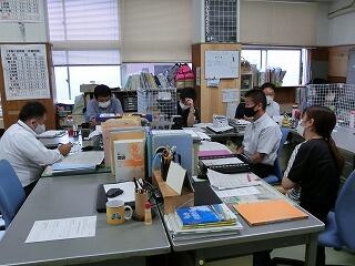 全ての職員が気持ちを一つに、生徒を支援していくために、年代・担当学年をばらばらにして、意図的にグループを編成し、話し合いを行いました。各班の話の様子を聞きながら、岡中のこれからが、ますます楽しみになってきました。