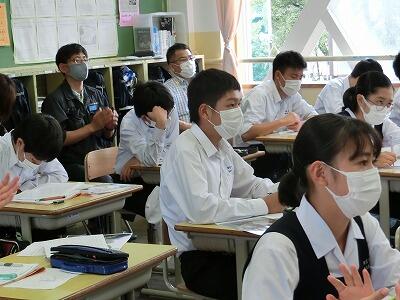 キャリア教育で訪問した企業の社長さんの前で、職場訪問をしたときの感想等を発表する機会を設定しました。社長さん方からも「これからはプレゼン力が大切になります。学校でもこんな機会をどんどんつくってください。」という言葉をいただきました。経験を積むことで、慣れることもあります。これからの社会の中心で活躍する中学生育成のためにも、学校でもこんな機会を多く設定したいと改めて感じました。