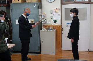 本日は、1年生が取り組んできた人権の花活動に対しての感謝状の贈呈式が
