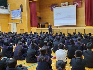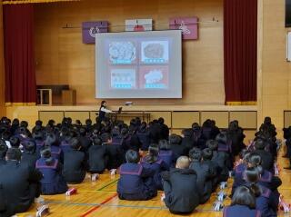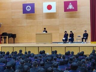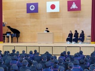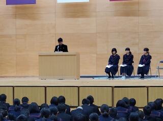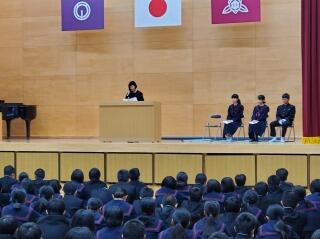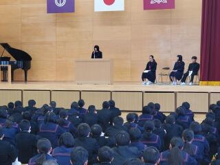 生徒集会にて、生徒会役員による12月の活動内容の発表や清掃コンクールの表彰が行われました。12月の活動内容にみんなで一生懸命取り組んでいきたいと思います!