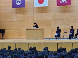 終業式では各学年の代表と生徒会役員がすばらしいあいさつをしました。