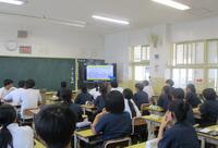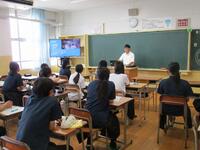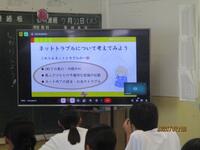 今回は熱中症対策のため、情報モラル教室をオンラインで各教室に配信しました。テーマは、ネット依存やネットいじめ、不確かな情報の広がり、個人情報の取り扱い、ネット詐欺、著作権や肖像権について、インターネットを使う時に気を付けたいことばかり。生徒たちは、身近な話にうなずいたり驚いたりしながら、真剣に話を聞いていました。便利なネットだからこそ、正しく使うことが大切。今回の学びをこれからの日常に生かしてほしいと思います。