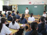 本日、「先輩の話を聞く会」を3年生を対象に実施しました。延岡市内6校の高校から本校の卒業生が来校し、それぞれが高校の雰囲気や1日の流れを分かりやすくプレゼンテーション形式で紹介してくれましたが、高校生活の楽しさや自分に合った進路選択の大切さが伝わってきました。参加した3年生からは、「進路を意識して生活したい」「勉強でも遊びでもメリハリをつけた生活が大切だし、そうすることで高校に入れると感じた」などの声が聞かれました。不安に思っていた高校生活も、先輩の体験談を通して前向きな気持ちになれたようです。卒業生のみなさん、ありがとうございました。