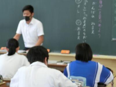 しろやま支援学校と岡富中学校との交流と共同学習を実施しました。朝自習・授業・給食・部活動まで一緒に活動します。聴覚障がい教育部門中学部の生徒が1年1組に参加しています。