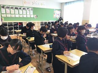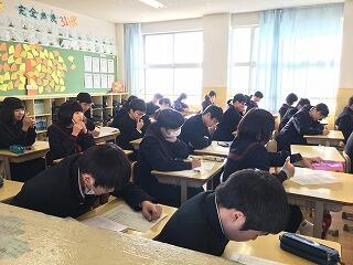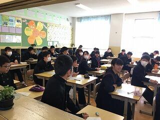 3年生は学年集会をせず、学年放送にて原田先生からのお話を聞きました。