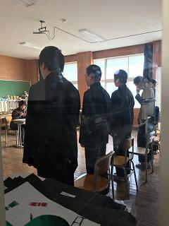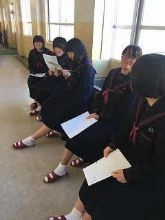 前の組が面接練習を終えて出てきた途端、次の組の生徒たちが