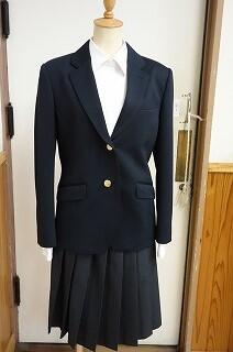 (1)上着は紺色ブレザーで2タイプ(一般体型タイプとウエストを絞ったタイプ)