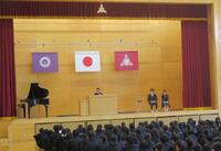 式では、各学年と生徒会の代表生徒が壇上に立ち、この1年間を振り返っての発表を行いました。