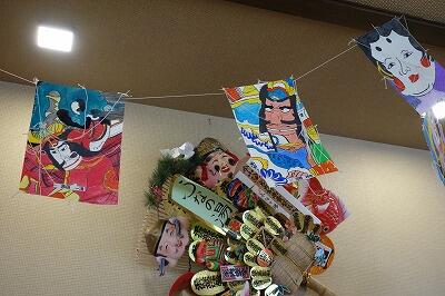 中学3年生が美術の時間に作成した「和凧」を校区内の3つの店舗において展示していただいています。