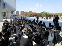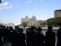 修学旅行の初日は、広島平和記念資料館、平和公園、原爆ドームを見学しました。講師の方のお話を通して、戦争の悲惨さや平和の尊さについて深く考える時間をもちました。資料や実際の場所に訪れる中で、生徒たちは真剣な表情で話を聞きました。