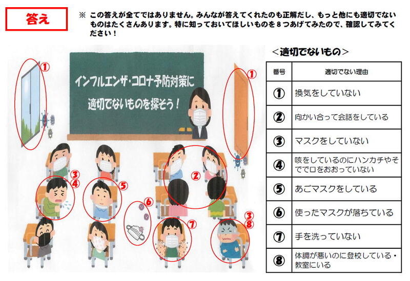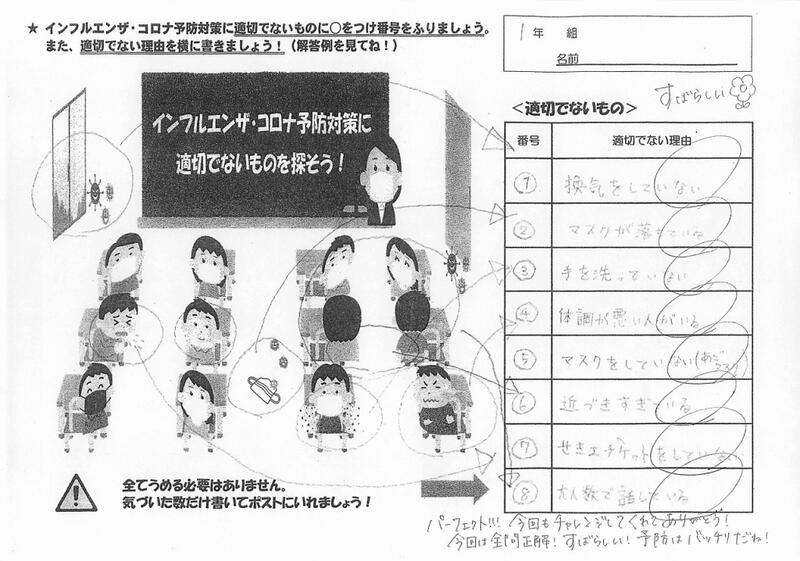 今回はパーフェクトの人がたくさんいました。その中で予防対策バッチリの解答者を各クラス1名紹介します。