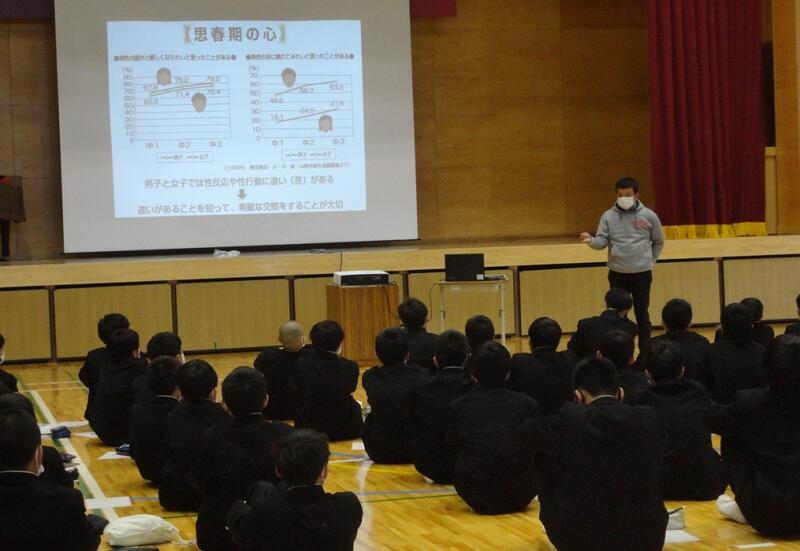体の変化と同時に、心も大きく変化することをきちんと学習し、一人で悩んでいたことが解決できる機会にして欲しい、悩んでいたら相談して欲しい。生徒が健康で、自分らしく安心して成長していくための知識を一緒に学ぶ時間になりました。「男子の指導」
