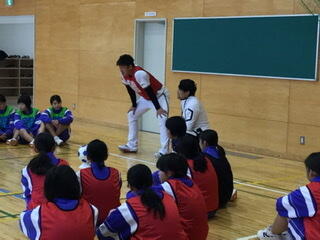 ▲〈2年3組〉の授業です。▲日本サッカー協会が、各種競技の選手を学校に招いて、生徒と夢について語り合う夢の教室が開かれました。▲1時間目は、体を動かしながら学ぶゲームの時間です。仲間と強力して目的達成する楽しさ、素晴らしさを体感しました。