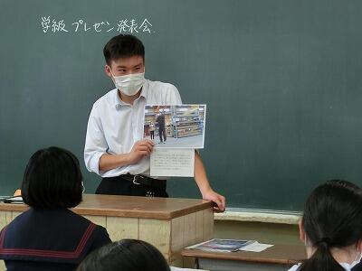 キャリア教育で訪問した企業の社長さんの前で、職場訪問をしたときの感想等を発表する機会を設定しました。社長さん方からも「これからはプレゼン力が大切になります。学校でもこんな機会をどんどんつくってください。」という言葉をいただきました。経験を積むことで、慣れることもあります。これからの社会の中心で活躍する中学生育成のためにも、学校でもこんな機会を多く設定したいと改めて感じました。