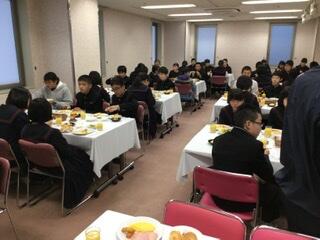 ▲今日も朝から元気です。しっかり食べて、京都の班別研修にスタートします。