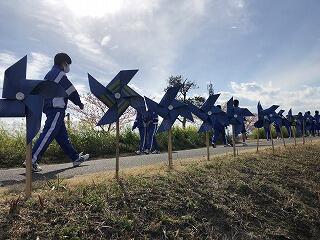 本日、岡富中学校1年生が責任もって皆さんの風車を設置しました!