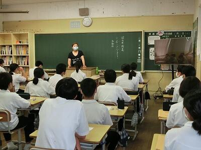 今日の総合的な学習の時間のテーマは「企業を変革し、延岡で起業する人の想いを聞く」ということで3名の講師を招き講義していただきました。講師は、デザイン事業や地域プチプランニングの甲斐さん、婚活応援活動を起業した佐々木さん、アトツギ甲子園宮崎県代表の松田さんです。それぞれの熱い想いに生徒も圧倒されていました。