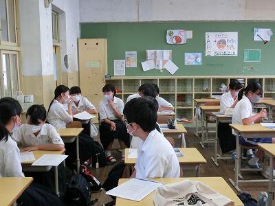 【 ↓ 暑い中、取材計画を立てる生徒たち(取材計画1日目) 】
