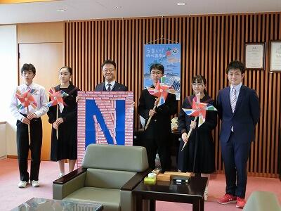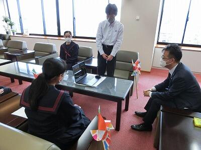 生徒会が呼びかけ市内の全中学校が参加した風車プロジェクトについて、市長に報告しました。