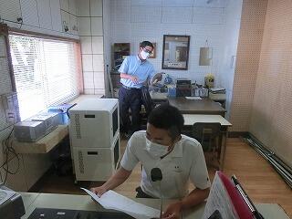 【総合司会の生徒会長と応援団長の話を放送室から各学級へ】