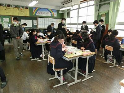 1年3組で理科(ゆれる大地:地震)の研究授業を実施しました。市内の多くの先生方にも参観していただきました。知識構成型ジグソー法を用いた協調学習で、すべての生徒が自分の意見を発表し、他者の意見を聞きながら最後に自分自身でまとめていく授業でした。授業者は、これまで東京大学の先生方にも直接指導していただきながらの研究授業でした。